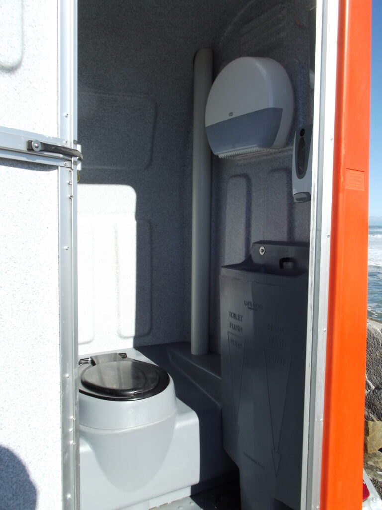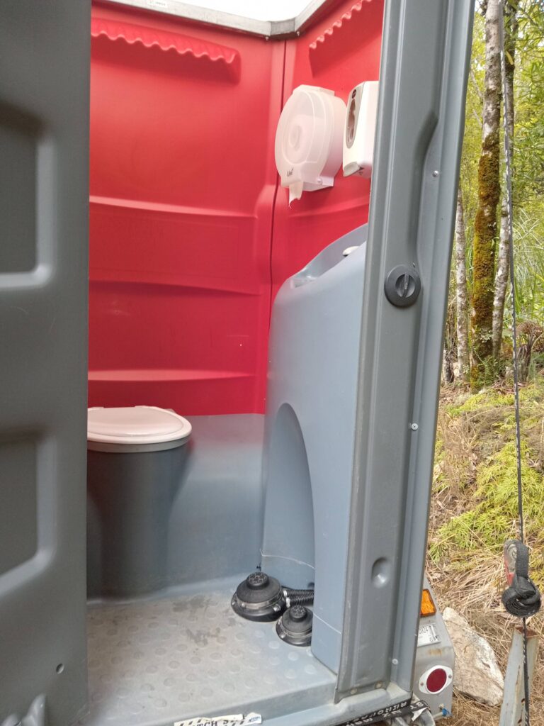 We have two Flushable Toilets mounted on trailers, that can be collected by the customer or delivered to sites at customers request.  Fantastic for parties and suitable for solemn occasions. These can be used for events that are away from Greymouth saving the transport fee. The light inside these makes them suitable for evening and nighttime events.